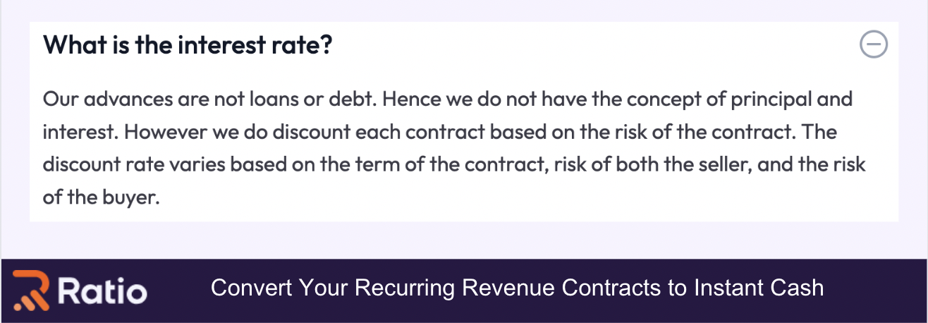 Using Ratio Boost allows B2B SaaS vendors to access the contract value upfront while offering payment flexibility to their customers. Offering payment flexibility enables vendors to expedite deal closures, eliminating the necessity of discounts to attract customers.