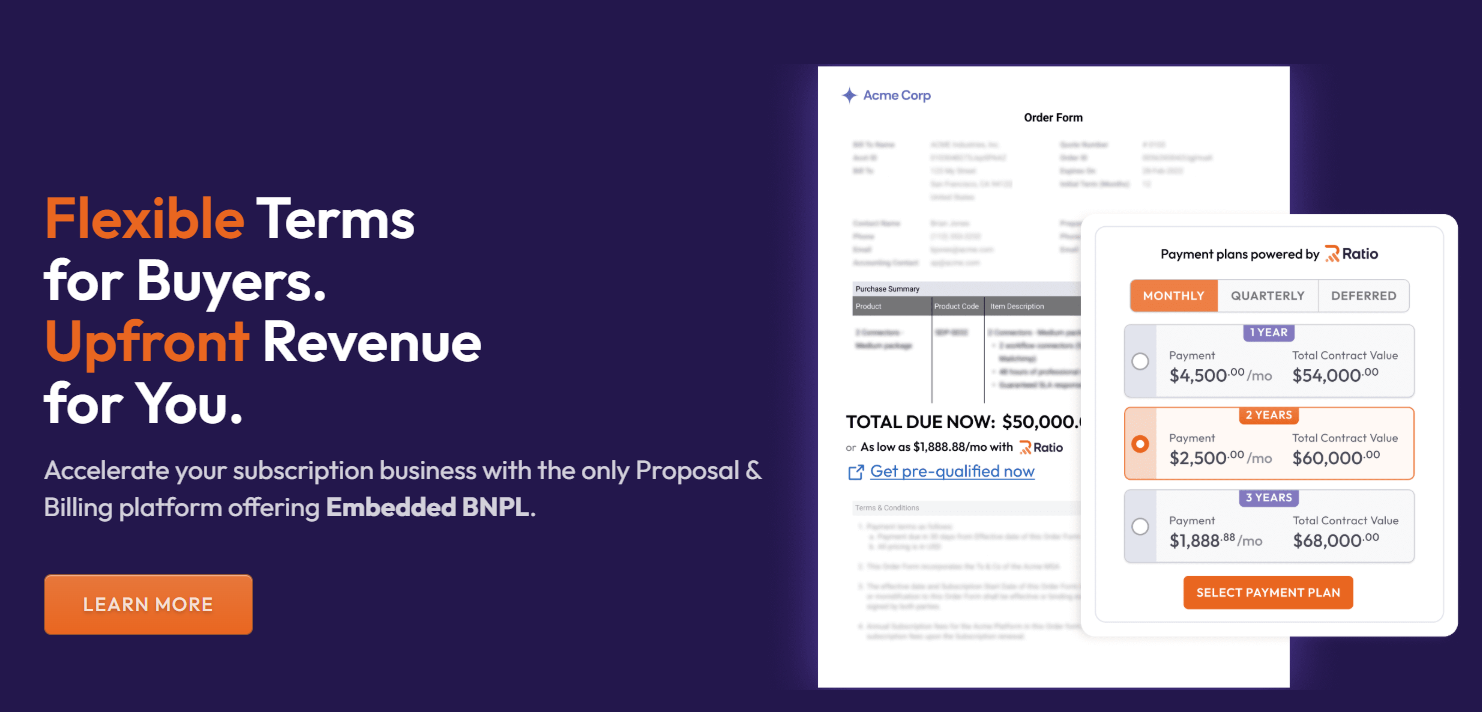 💡 If you sell annual contracts, you’re probably losing sales from buyers who prefer monthly terms. Not because they don’t want the product, but because the timing doesn’t work. BNPL removes that friction while still giving you upfront payment and clean revenue.