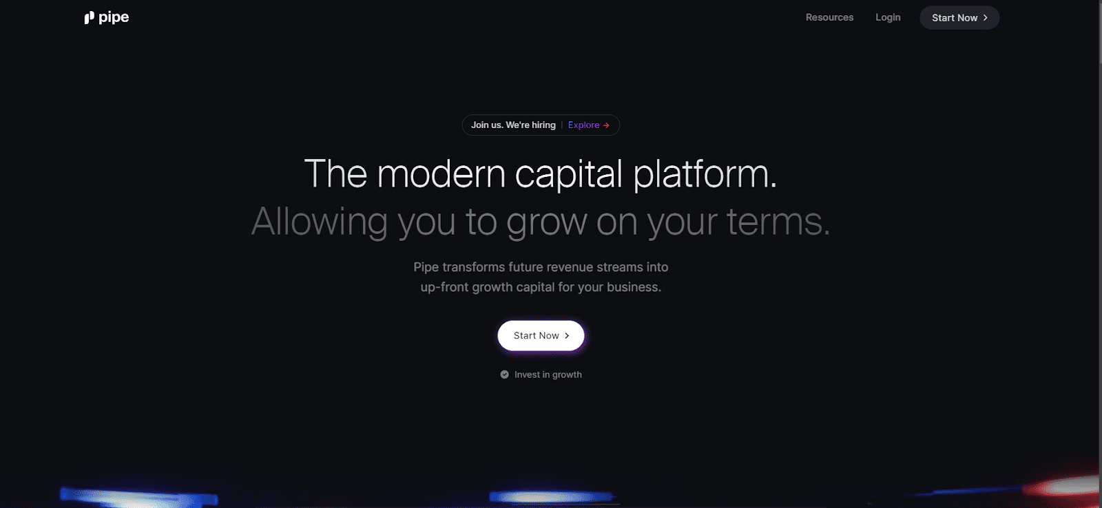 Pipe is a capital platform that enables future revenue conversion into upfront capital. Curious how it stacks up? See Ratio vs. Pipe for a side-by-side comparison.