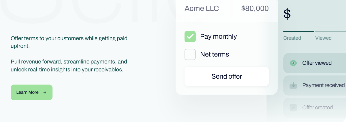 Most SaaS lending platforms solve only half the problem. Some advance you cash against ARR. Others give buyers BNPL options. But very few do both, and almost none connect directly into your sales workflow.