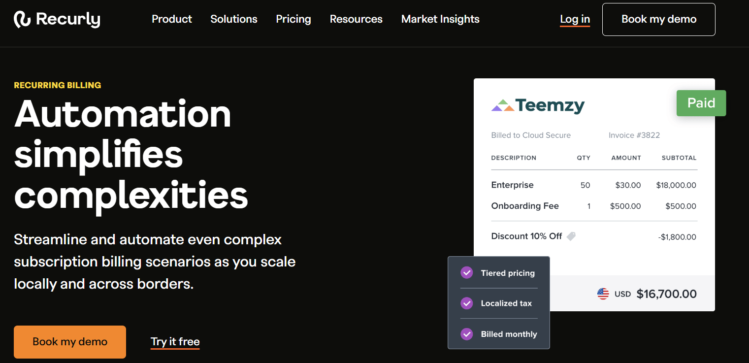 - Recurring Billing Automation - Streamline subscription billing with automated invoicing, renewals, and tax compliance across global markets.