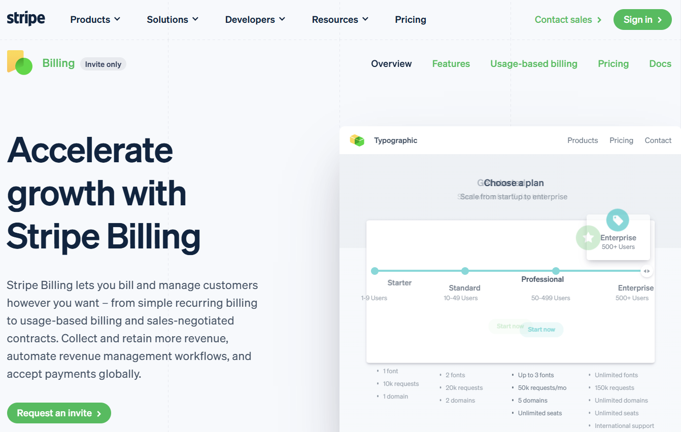 Stripe Billing offers flexible, usage-based pricing for businesses of all sizes.