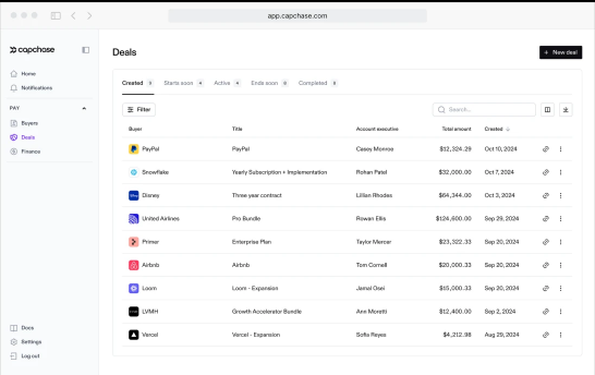 Capchase is a vendor financing platform that lets SaaS and tech companies offer flexible payment terms to buyers (monthly, quarterly, or multi-year) while still getting paid the full contract value upfront.